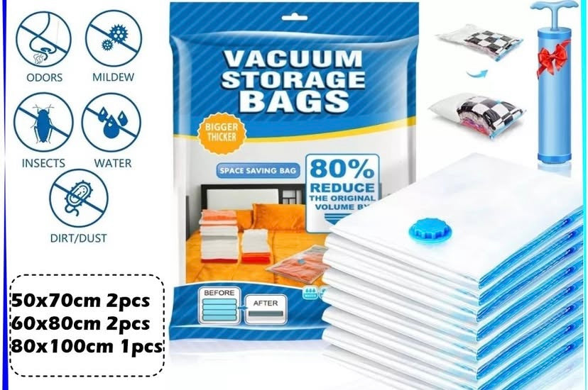 5 bolsas organizadoras , incluye bomba Manual