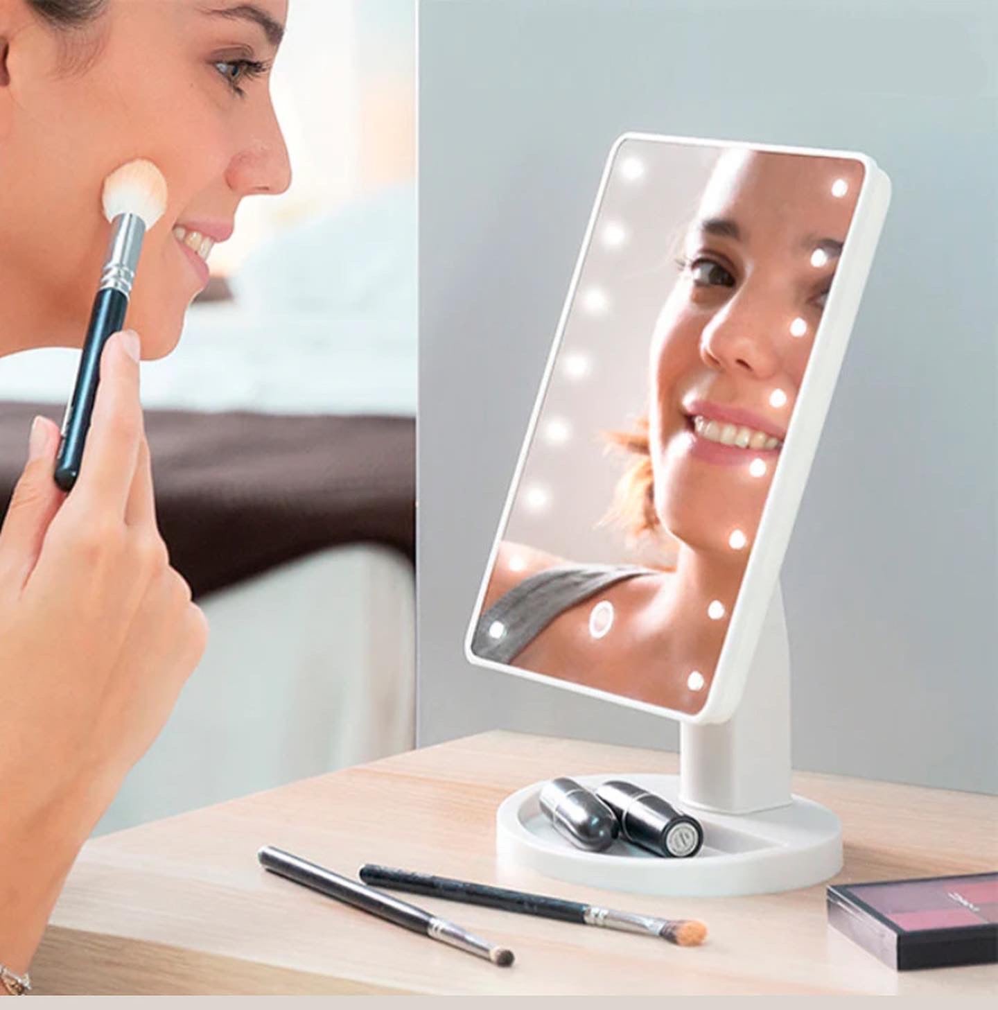 Espejo de luces led práctico y moderno el cual te ayudará a obtener un mejor acabado en el resultado final de tu maquillaje, sus luces led son regulables y posee una base rotativa de 180 grados para mayor comodidad, no necesita cable por lo que puedes utilizarlo donde quieras.